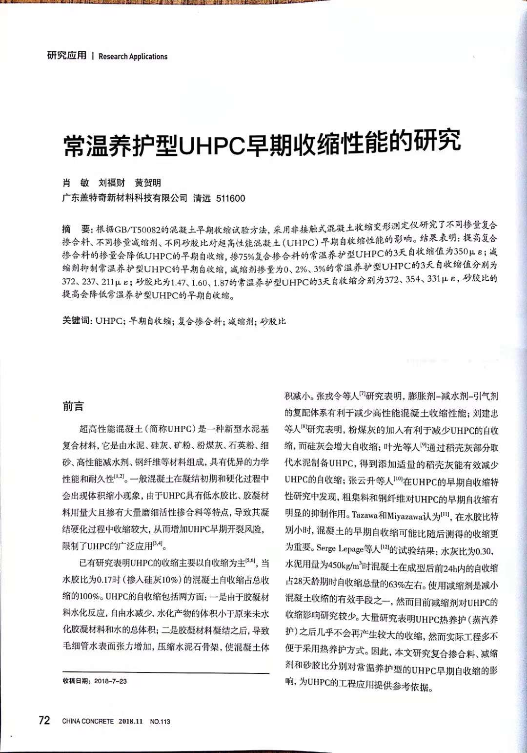 常溫養(yǎng)護(hù)型UHPC早期收縮性能的研究