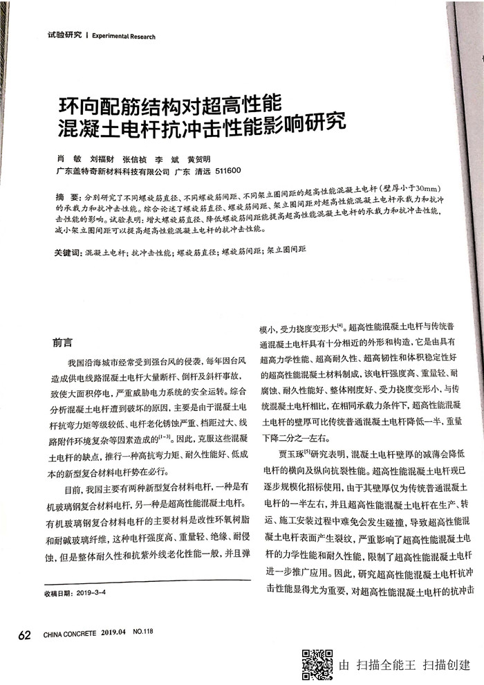 環(huán)向配筋對(duì)超高性能混凝土電桿抗沖擊性能影響研究
