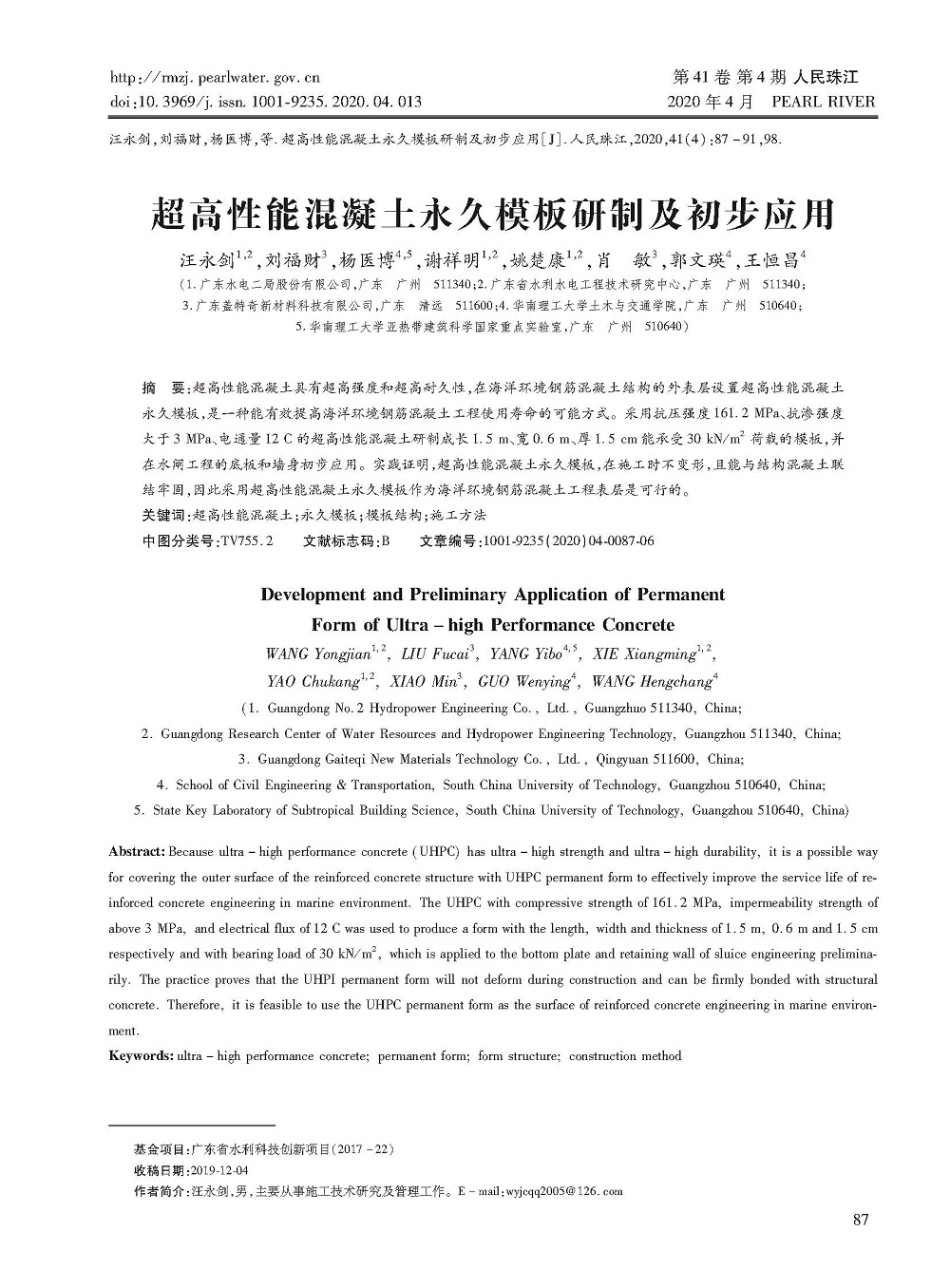 超高性能混凝土永久模板研制及初步應(yīng)用